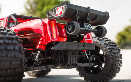 Loaded with legendary ARRMA toughness and speed, the 1/10 scale OUTCAST 4S BLX Stunt Truck is capable of more than simple off-road bashing. Its short 12.32 inch wheelbase allows flips and makes it easy to maneuver nimbly through obstacles and terrain.