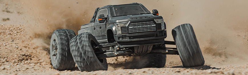 Supersized to 1/7 scale and amped up with 6S platform power, this BIG ROCK™ 4x4 blasts like only the big ones can! With ARRMA® durability and performance plus a detailed, rugged truck body, it's a massive, dirt-chucking monster capable of 65+ mph speeds.