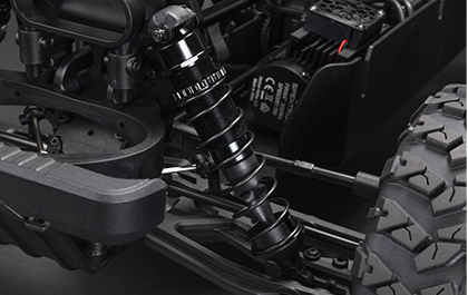 The shocks keep the tyres firmly planted for high traction and provide smooth travel over rough off-road terrain.