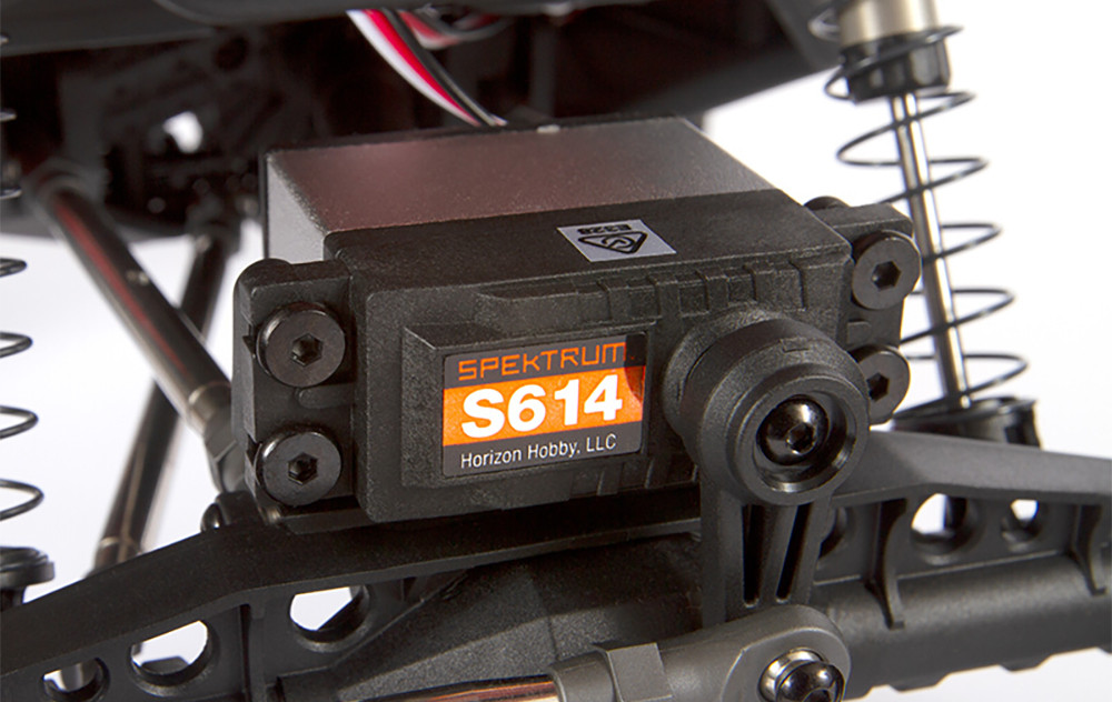 The Spektrum S614 metal geared servo offers 201 oz-in of steering torque, a metal case for strength, and it's waterproof for extra protection against the elements.