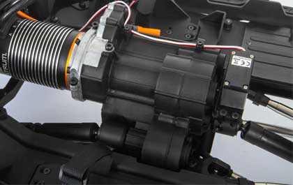 The chassis will also accept larger 1/5 scale servos, if desired, with the included adapter.