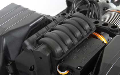 A replica V8 engine covers and protects the included Spektrum™ Firma™ Smart ESC while adding to the model's realistic appearance.