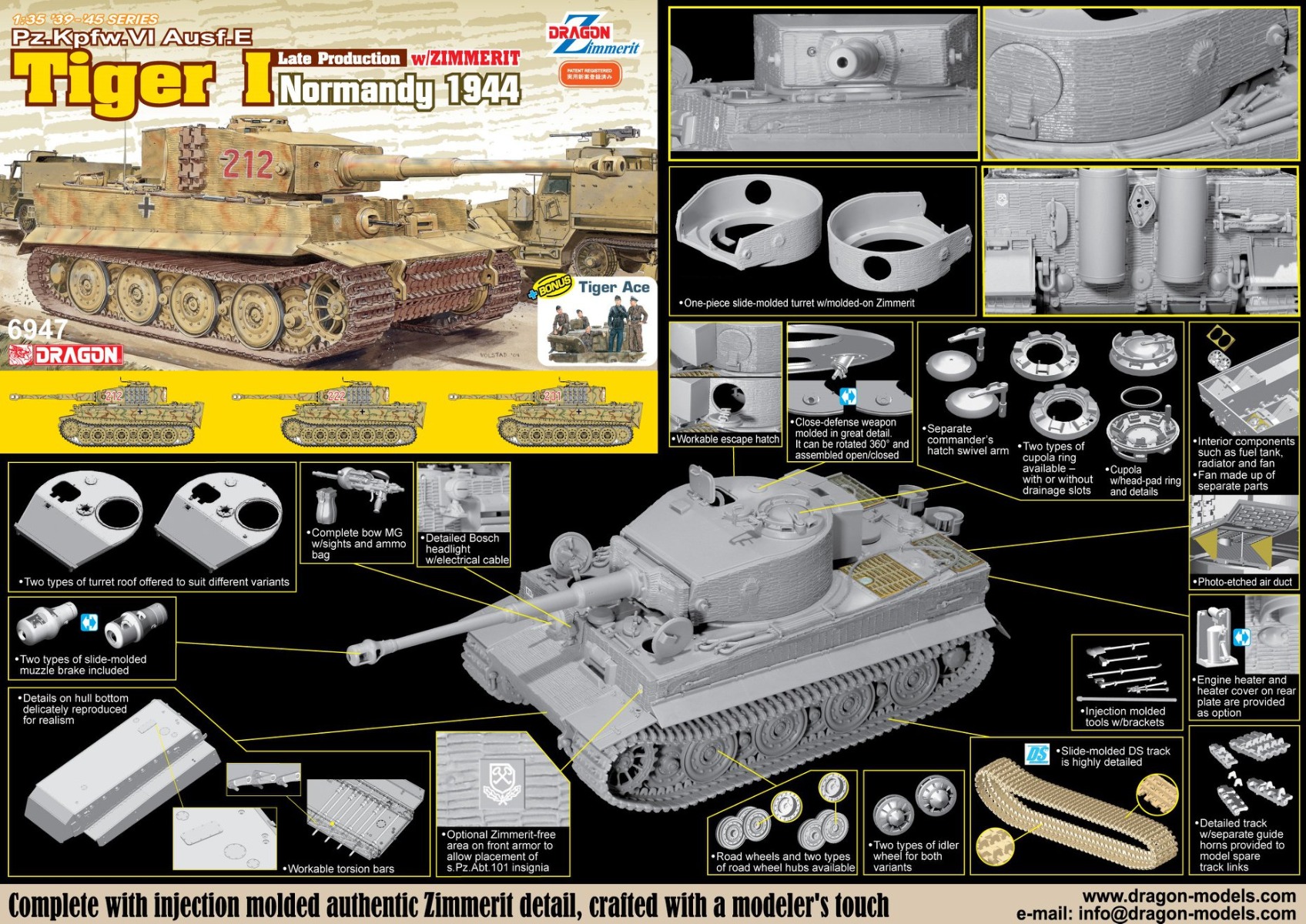 | Short Description | Dragon 1/35 TIGER I LATE PRODUCTION W/ZIMMERIT (NORMANDY 1944) # 6947 |