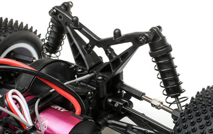 The injection-moulded shocks feature threaded shock collars allowing for easy preload/ride height adjustments. Additionally, the shock bodies feature a bottom loading, re-buildable shock cartridge with dual o-rings to help keep the oil in the shocks.