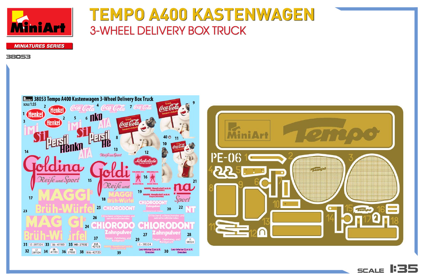 Miniart 1/35 Tempo A400 Kastenwagen 3-Wheel Box Truck # 38053