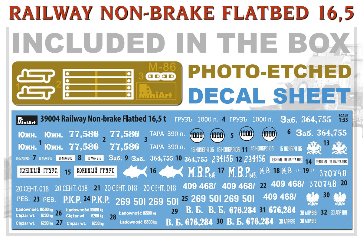 | Short Description | Miniart WWI 1/35 Railway Non-Brake Flatbed 16.5t # 39004 |