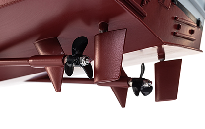 The submerged rudder system of the PCF Mark I adds to the scale realism and while steering the boat with authority.