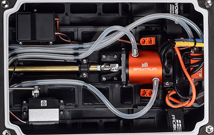 When you're running on water, chances are good a small amount will get into the hull. Spektrum receivers are water resistant, but the exposed pins that accept servo leads are susceptible to connection issues if they do become wet. The Blackjack 24" catamaran includes a receiver box that locks out moisture and keeps this critical component safe and dry.