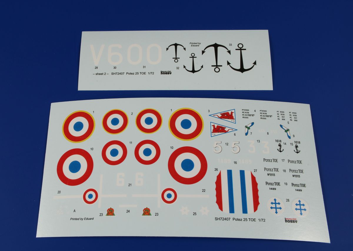 The kit offers four interesting and colourful scheme options, a Vichy machine boasting distinctive red-yellow stripes which saw service in French Indochina in 1942, a pre-war airframe with white stripes on its top wing, an Aeronavale machine which was operated over mainland France in 1940 and finally a Free French Potez as used in Syria in 1944.