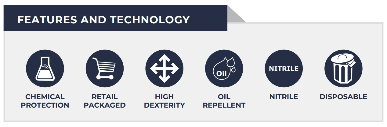 Black premium nitrile 4mil examination gloves. NOVA-BLK is a premium quality NBR nitrile disposable glove that offers good chemical resistance. Lightweight and extremely comfortable to wear. The NOVA-BLK offers excellent dexterity and sensitivity with a textured finishfor enhanced grip. 5g in weight or 4mil thick, the disposable is extra resilient against any snags, puncturesor tears. Quality assured with an AQL of 1.5 and certified complex design CAT III , EN ISO 374 Type B and EN 455 approved.